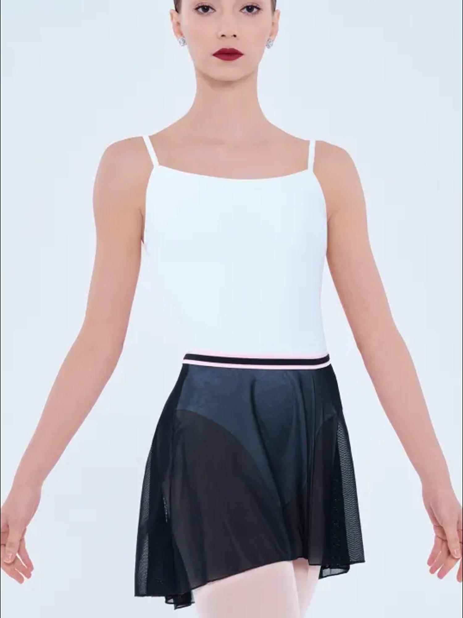 Wear Moi Ombrelle on läpikuultava, takaa hieman pitenevä tanssi- ja balettihame. Vaalea kontrastivärinauha korostaa vyötäröä. Täydellinen yhdistelmä samanvärisen Wear Moi Margot balettipuvun kanssa!