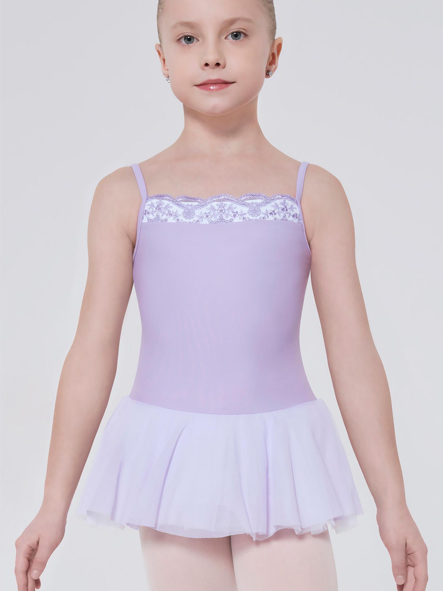 Balettipukua koristaa kauniisti kukkakirjailtu pitsi, joka kehystää klassisesti leikattua naruolkaimista yläosaa. Tutuhelmassa on neljä kerrosta kimaltavaa tylliä, mikä tuo helmaan sopivasti runsautta ja ilmavuutta. Vyötärön kruunaa suloinen rusetti selkäpuolella.