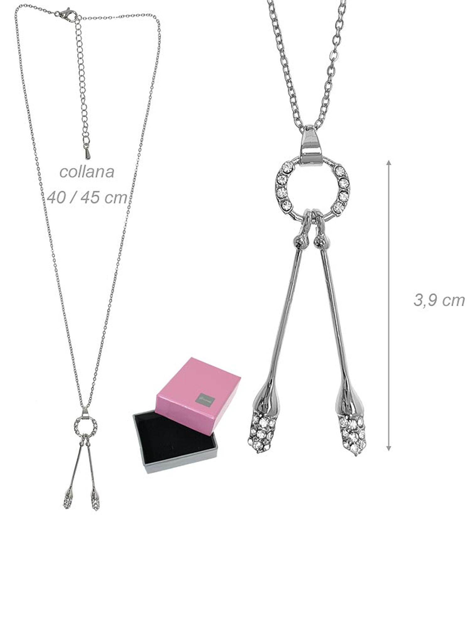 Kahta voimistelukeilaa kuvaava kaulakoru on kaunis ja merkityksellinen lahja voimistelijalle esimerkiksi onnistuneen kauden tai tärkeän kisapäivän muistoksi. Strassikoristeet tuovat koruun hienovaraista kimallusta, ja elegantin muotoilun ansiosta omaa lajiylpeyttä voi osoittaa tyylikkäästi.
