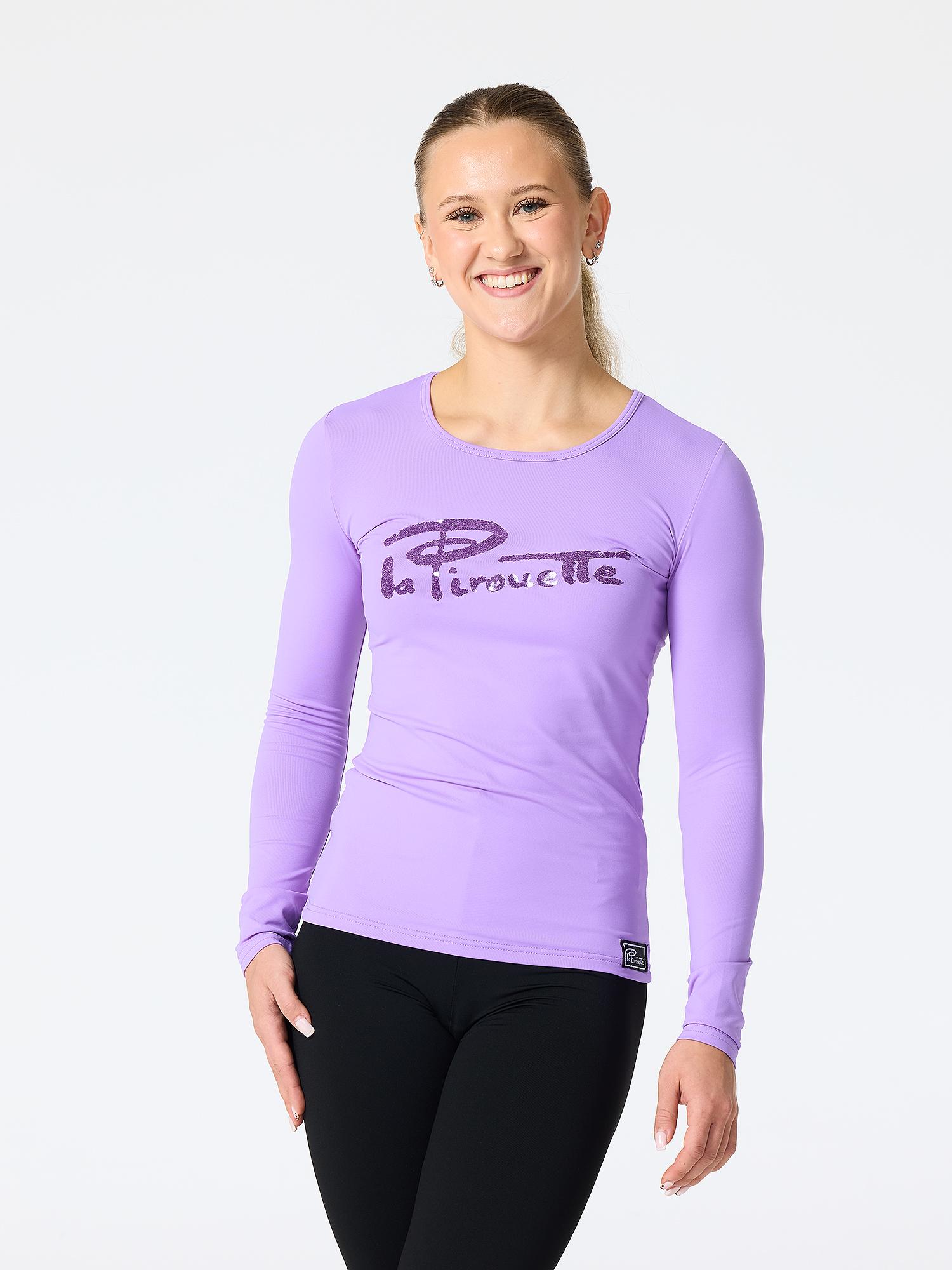 Suosittu treenipaita ”la Pirouette” -kimalleprintillä, painatuksen väri merkitty sulkuihin.